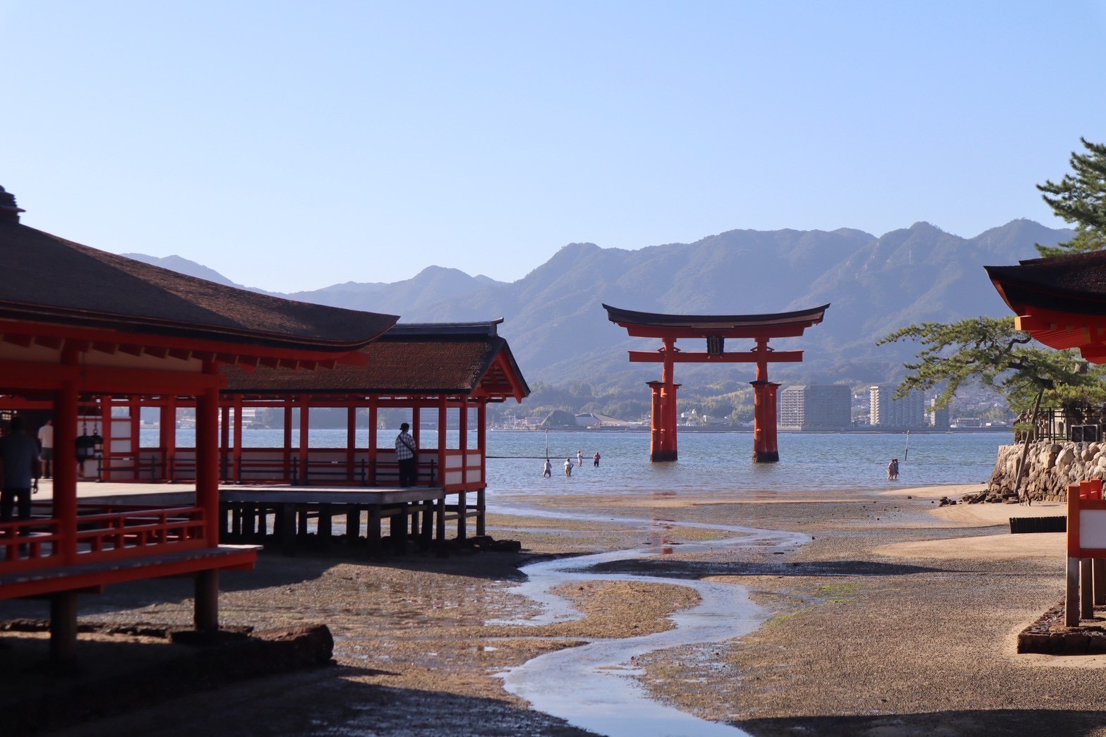二日目は広島へ移動。世界遺産の「宮島・厳島神社」では、潮の満ち引きによって姿を変える大鳥居をバックに記念撮影。海と空に包まれるような神聖な空気に、みんな自然と背筋が伸びました。